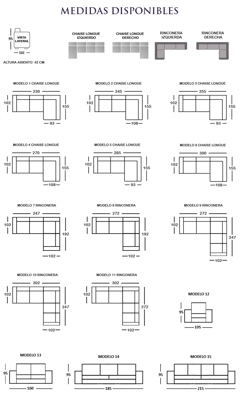 Medidas Disponibles: MODELO 1 CHAISELONGUE DERECHO