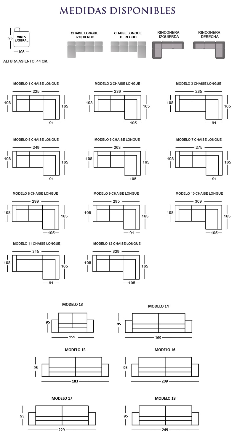 Medidas Disponibles: MODELO 1 CHAISELONGUE DERECHO